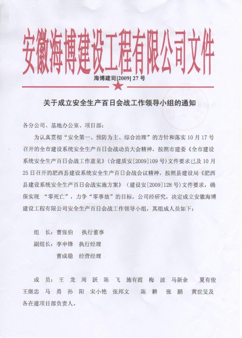 關(guān)于成立安全生產(chǎn)百日會戰(zhàn)工作領(lǐng)導(dǎo)小組的通知