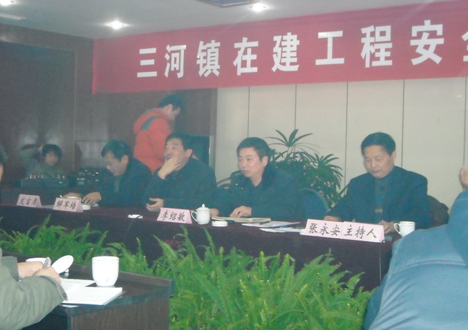 三河鎮(zhèn)在建工程安全生產(chǎn)現(xiàn)場(chǎng)會(huì)于2009年12月19日09時(shí)在三河國(guó)際大酒店隆重召開,肥西縣建設(shè)局黨組書記張永安同志參加并主持會(huì)議,參加會(huì)議的領(lǐng)導(dǎo)還有肥西縣建設(shè)局局長(zhǎng)李紹敏,副局長(zhǎng)解軍培,副局長(zhǎng)戴忠德等。