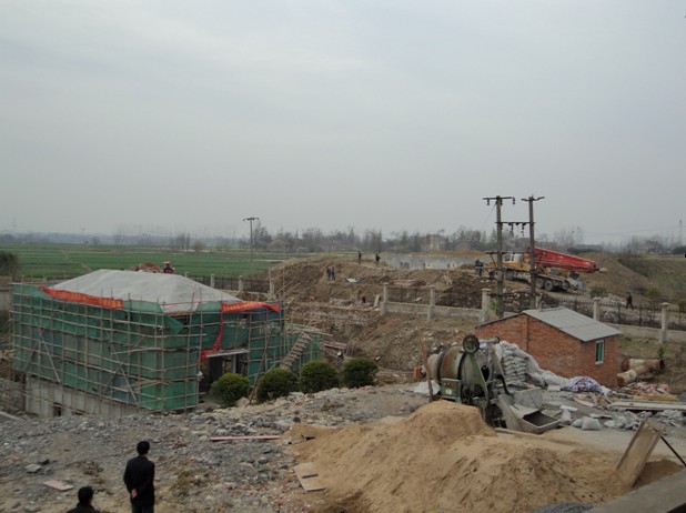 中派站工程是本次肥西縣濱湖泵站更新改造工程的第6標(biāo)段,工程位于肥西縣上派鎮(zhèn)與嚴(yán)店鄉(xiāng)交界處,距合安高速公路約2km。為老站拆除新建項(xiàng)目,是以灌溉為主兼有排澇功能的泵站。為了保證灌區(qū)農(nóng)田春耕、春種用水需要,我公司自開工以來就加大投入、積極準(zhǔn)備、合理安排。在所有6個(gè)標(biāo)段中,第一個(gè)澆筑底板、第 一個(gè)實(shí)現(xiàn)結(jié)構(gòu)封頂、第一個(gè)開始設(shè)備安裝。為工程按期完工打下了良好的基礎(chǔ)。