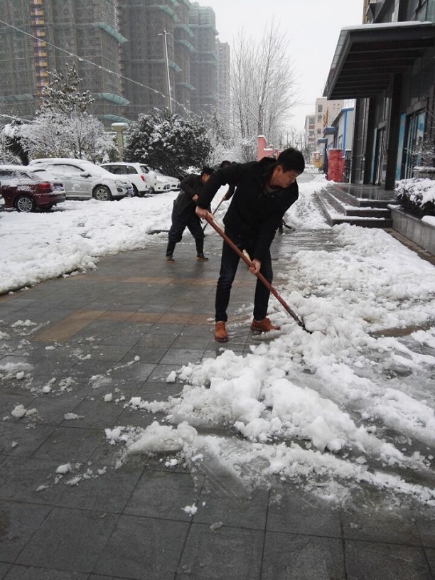 5日早晨,管理公司張總、物業(yè)部孔經(jīng)理親自組織本版塊成員采取鐵鍬鏟雪、掃帚掃雪、水管沖雪等方式為大家開辟道路。在白雪皚皚的清晨,銀裝素裹的產(chǎn)業(yè)園中,鐵鍬與掃帚的勞作聲,似乎燃起了大家內(nèi)心的火熱,吸引著更多的聯(lián)海同仁自發(fā)的參與其中,感謝這些可愛的聯(lián)海人,讓我們?yōu)檫@些“開路者”點(diǎn)贊!