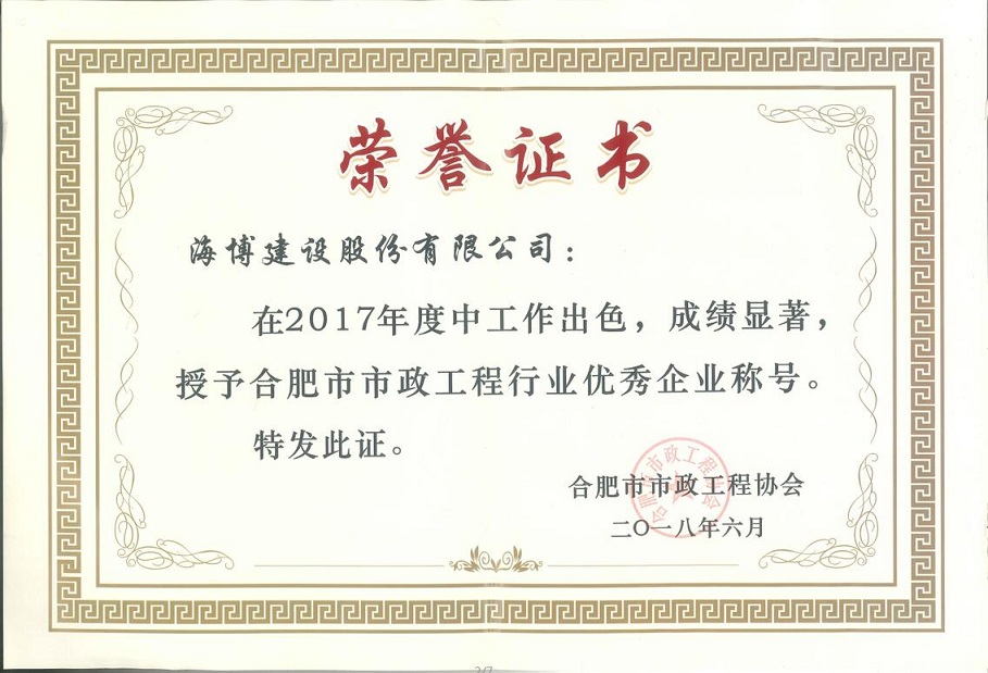 大會(huì)表彰了2017年度合肥市市政工程優(yōu)秀企業(yè)、優(yōu)秀項(xiàng)目經(jīng)理,本次大會(huì)共表彰優(yōu)秀企業(yè)83家,優(yōu)秀項(xiàng)目經(jīng)理159名,我司再次榮獲“合肥市市政工程優(yōu)秀企業(yè)稱號(hào)”,3名項(xiàng)目經(jīng)理獲得“優(yōu)秀項(xiàng)目經(jīng)理稱號(hào)”。大會(huì)同時(shí)表彰了2017年度合肥市市政養(yǎng)護(hù)示范設(shè)施“扁鵲杯”、合肥市市政工程建設(shè)優(yōu)秀QC小組活動(dòng)成果等獲獎(jiǎng)項(xiàng)目及單位。